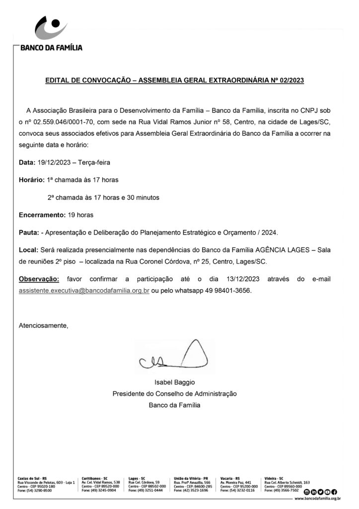 EDITAL DE CONVOCAÇÃO – ASSEMBLEIA GERAL ORDINÁRIA Nº 02/2023